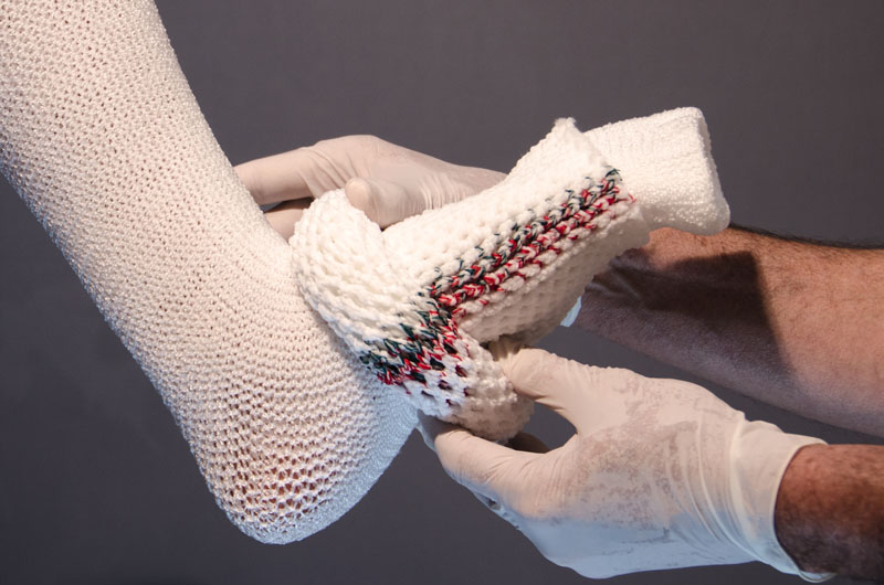 Each Magicast kit includes 2 sleeves: a white, moisture-wicking padding sleeve and a mesh sleeve saturated in polymer that comes sealed in a special, aluminum foil vacuum pack.