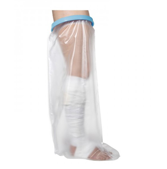 Firstar’s plastic shower cover provides water protection in the shower and even on rainy days. The Firstar covers are intended for use by patients with leg casts, bandages, skin conditions, PIC lines etc.
